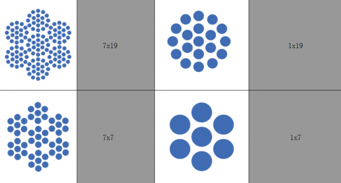 | 7 x 19 прядей | От 0,08 мм (0,0031 дюйма) до 0,71 мм (0,028 дюйма) |